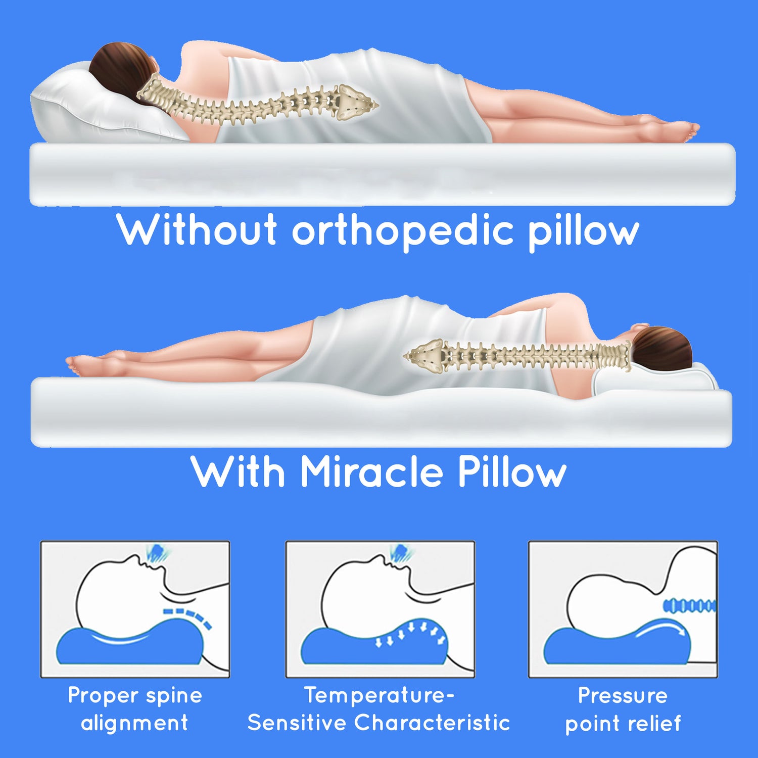 Featuring two types of foam, each with a different level of pliability, Miracle Pillow is engineered to provide optimal support to your neck.